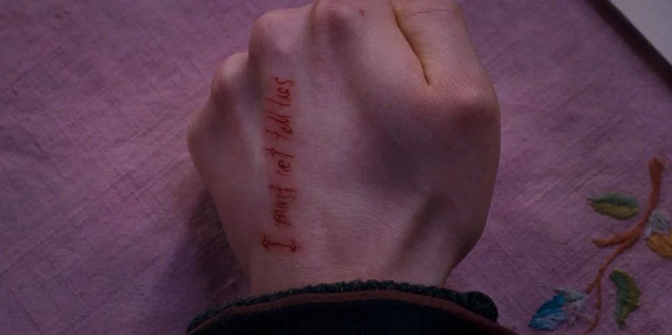 也是在《哈利·波特与凤凰社》期间,我们开始看到乌姆里奇实际上是多么的虐待狂。J.K.罗琳曾在《Pottermore》上提到,“她以法律和秩序的名义控制、惩罚和施加痛苦的欲望,我认为,与伏地魔毫不掩饰地支持邪恶一样,都应受到谴责。”为了惩罚哈利说他们需要学习防御咒语来抵御伏地魔(魔法部明确表示他们不相信他回来了),她给了他一种非常独特的关禁闭方式。